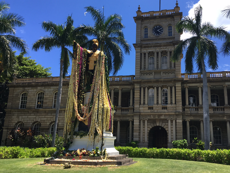 - Exterior views of Iolani Palace, King Kamehameha statue, Mission Houses and Kawaiaha’o Church